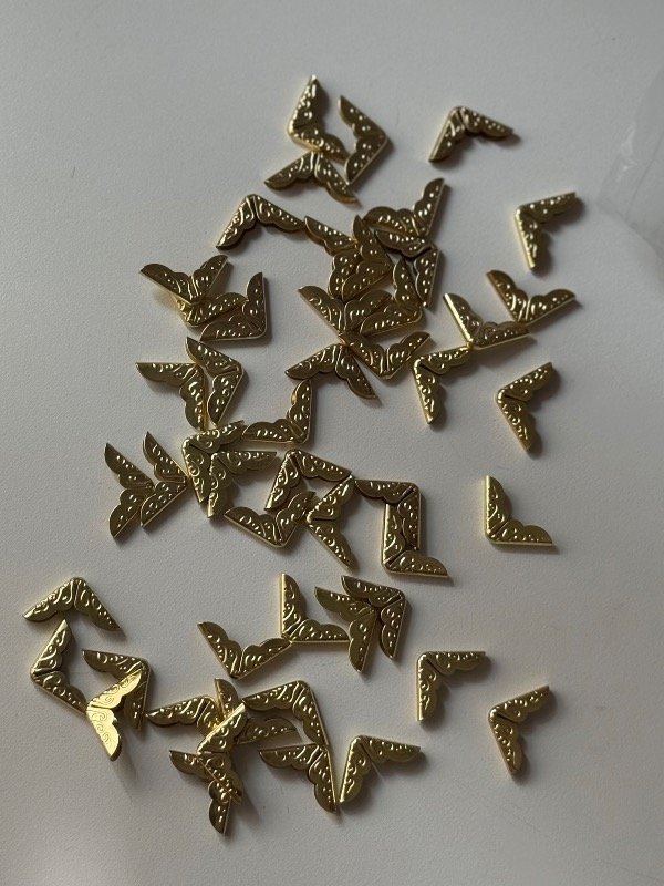 Esquineros dorados protectores y decorativos para libros, vienen en un pack de 4 unidades, se ajustan con presión o suavemente con una pinza.