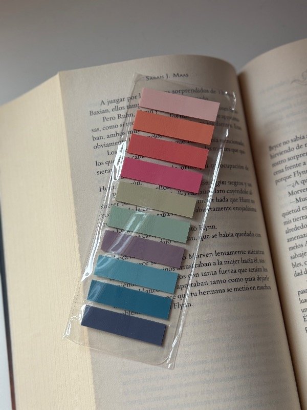 Post it con variedad de 10 colores, para combinar con tu libro, marcar frases o dejar lindos tus apuntes. Súper fácil de pegar y despegar sin dañar las hojas.