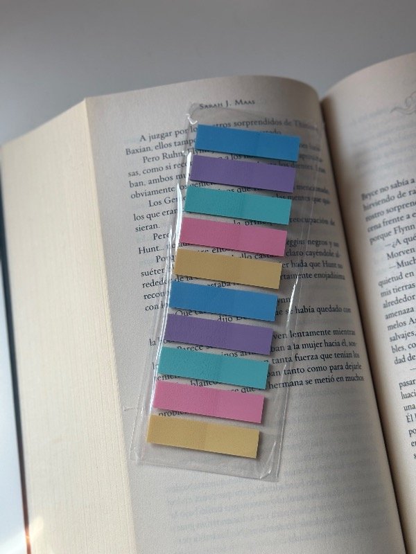 Post it con variedad de 10 colores, para combinar con tu libro, marcar frases o dejar lindos tus apuntes. Súper fácil de pegar y despegar sin dañar las hojas.