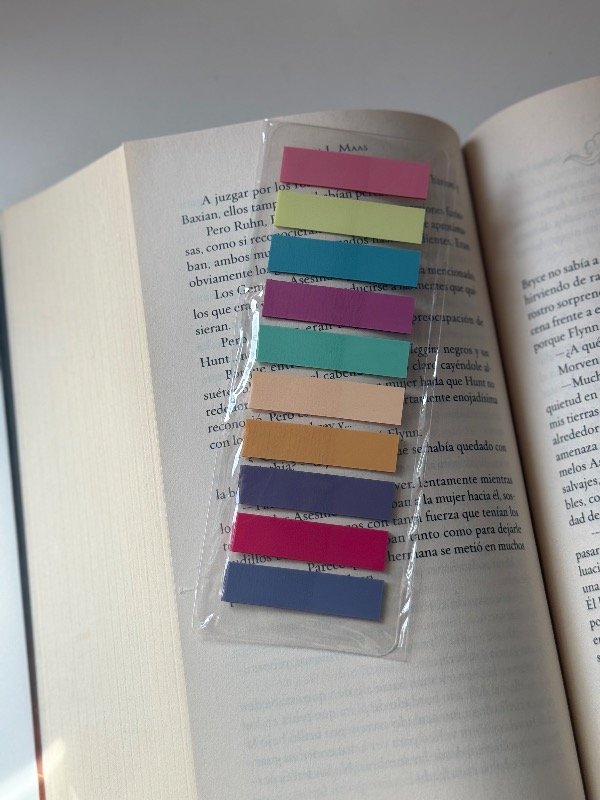 Post it con variedad de 10 colores, para combinar con tu libro, marcar frases o dejar lindos tus apuntes. Súper fácil de pegar y despegar sin dañar las hojas.