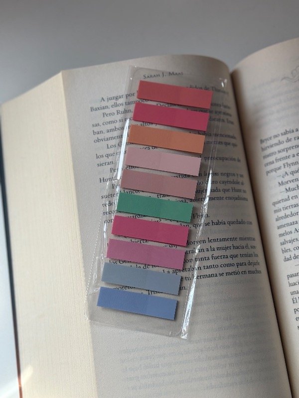 Post it con variedad de 10 colores, para combinar con tu libro, marcar frases o dejar lindos tus apuntes. Súper fácil de pegar y despegar sin dañar las hojas.