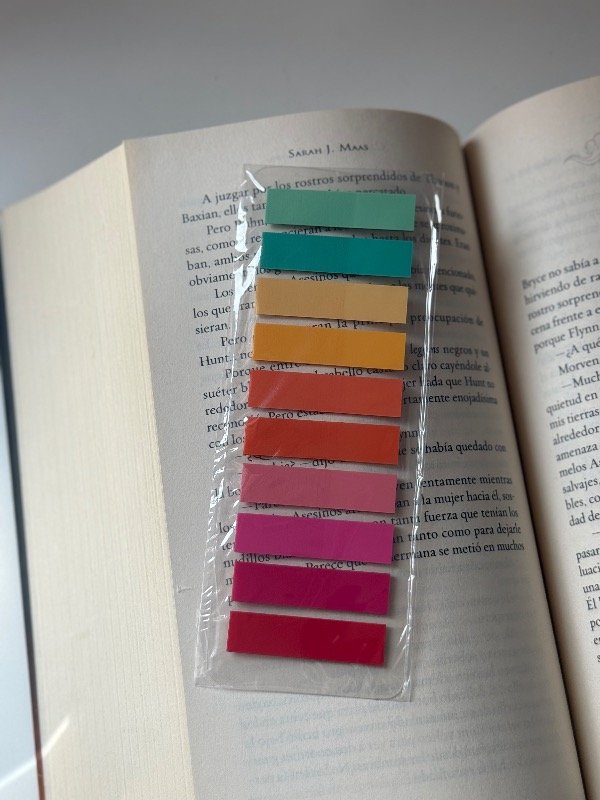 Post it con variedad de 10 colores, para combinar con tu libro, marcar frases o dejar lindos tus apuntes. Súper fácil de pegar y despegar sin dañar las hojas.