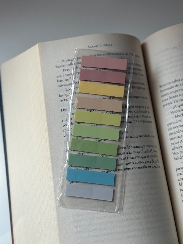 Post it con variedad de 10 colores, para combinar con tu libro, marcar frases o dejar lindos tus apuntes. Súper fácil de pegar y despegar sin dañar las hojas.
