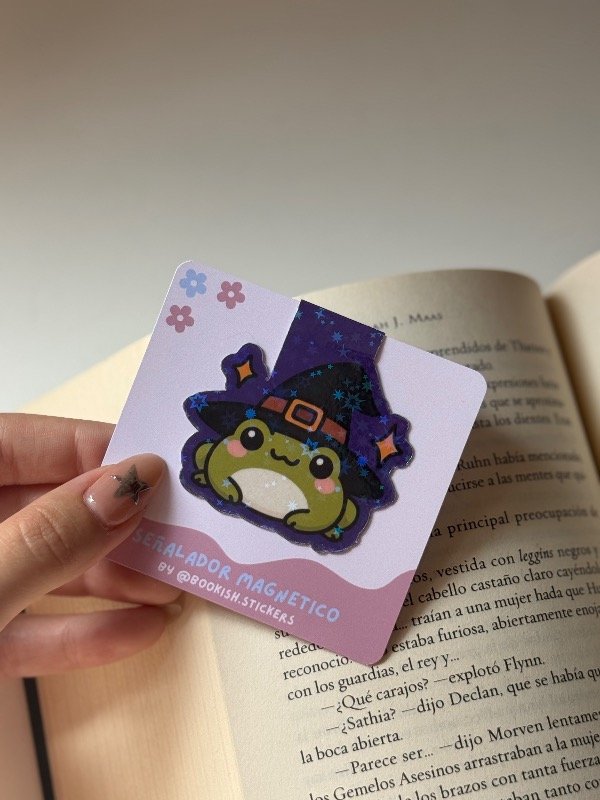 Señalador magnético plastificado en ambos lados y con un acabado holográfico.